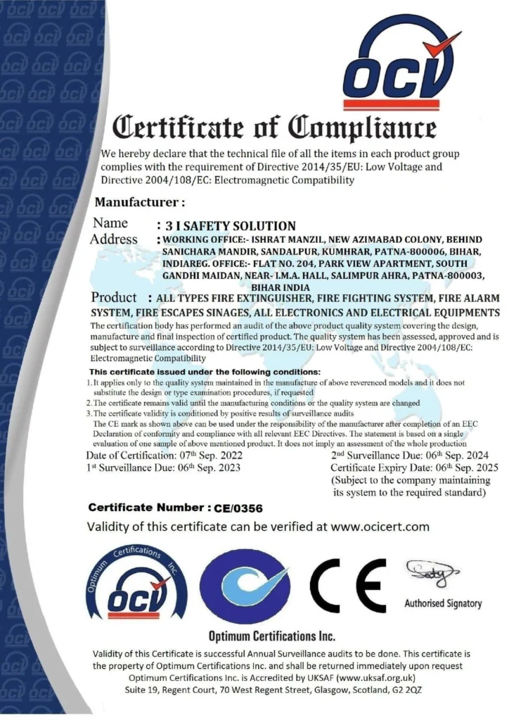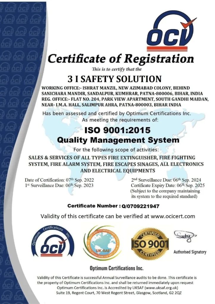 At 3i Safety Solution, our certifications underscore our dedication to delivering world-class safety and compliance solutions. With the prestigious CE Certificate, we align with European safety, health, and environmental standards, ensuring superior quality. Our ISO 9001:2015 certification highlights our robust quality management systems, guaranteeing consistent excellence in every project. Additionally, the Udyam Registration Certificate reflects our recognition as a reliable and trusted enterprise under the Government of India. These achievements showcase our unwavering commitment to quality, safety, and professionalism, reinforcing the trust our clients place in us.